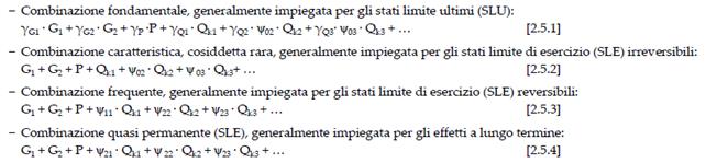 La sovrapposizione degli effetti (cioè la somma algebrica di cui sopra) vale solo in campo lineare, pertanto non sarà più possibile riferirsi alle combinazioni di progetto usuali agli SLU e SLE. Con riferimento alle NTC, si hanno le seguenti combinazioni: