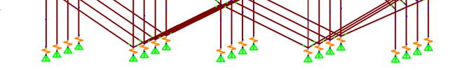 La prima operazione da effettuarsi è la rimozione dei vincoli rappresentanti le basette. I montanti verranno ridotti di una lunghezza convenzionale (es. 10cm) per fare in modo di ospitare le molle gap. I nodi copiati possono essere vincolati nuovamente con cerniere fisse. A questo punto si possono aggiungere le molle di tipo gap fra vincolo e base montante.