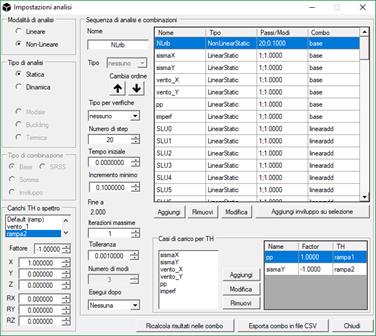 Impostiamo infine un caso di carico non lineare che preveda l’applicazione del peso proprio come carico verticale, e della forza contenuta del caso “sismaY” (equivalente ad esempio alla forza inerziale di una parete soggetta a sisma)