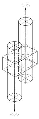 Tale formula rappresenta un dominio convenzionale, che fa esplicito riferimento allo scorrimento in 2 direzioni, alla separazione del giunto e alla resistenza alla torsione/momento cruciforme del giunto. In particolare, per lo scorrimento si fa riferimento alla media delle sollecitazioni Fs1 e Fs2 proprie di ogni asta collegata. Questa relazione vale solo per i giunti ortogonali, in quanto si assume la media di Fs1 e Fs2. Da un punto di vista più generale, lo stesso dominio si può scrivere nel modo seguente: