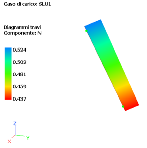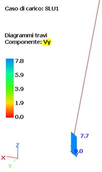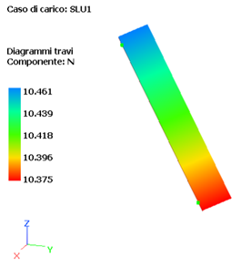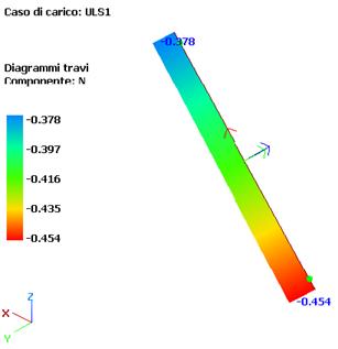 Sforzo assiale (a) e taglio Vy dovuto al peso proprio (b) per la combinazione di carico SLU1 per la diagonale in esame