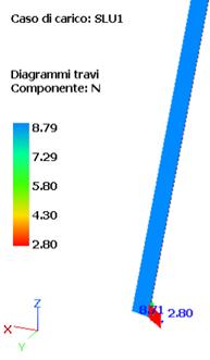 Accortezze di modellazione a parte, si noti in figura seguente come lo sforzo assiale nella diagonale sia la risultante dei 2 tagli che transitano attraverso l’elemento giunto che la connette al montante. Per la verifica dell’elemento giunto si prendono in considerazione le sollecitazioni riferite ai suoi assi locali x, y e z, orientati come in figura seguente (a).
