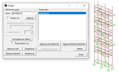 Nel caso di nodi-giunto, basterà selezionare gli elementi interessati, mentre gli elementi giunto rappresentano già le aste volute. Basterà infine selezionare in fase di verifica il gruppo desiderato, come in figura (b).