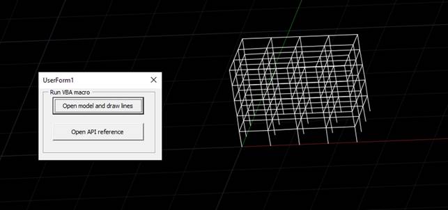 This is a demonstration of what NextFEM API can do in your CAD environment. By pressing “Open model and draw lines”, the VBA script will ask for a NextFEM model to open. Pick a model made by beams and watch it while it is drawn on screen!