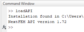 We look for the installation folder using the Windows registry, then the assembly of NextFEM API is loaded and instantiated. Call the methods inside NF to have model data and results inside Matlab.