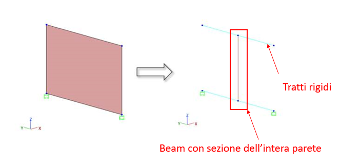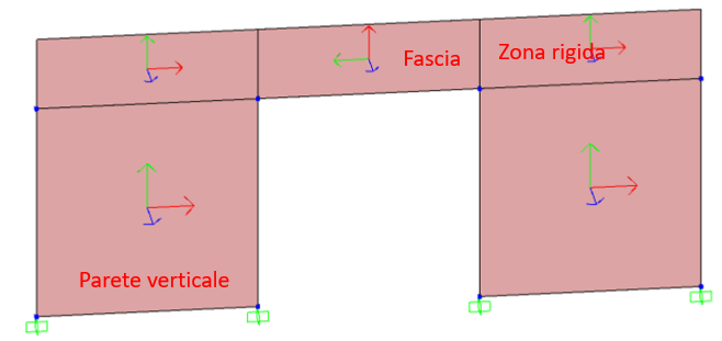 della parete, mentre le zone rigide sono rappresentate con macroelementi di