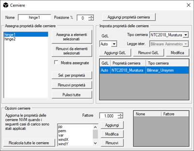 la modellazione in campo non lineare può essere impostata con le cerniere