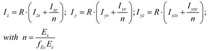 All’interno della scheda Dati vengono automaticamente calcolate le caratteristiche geometriche della sezione composta, tenendo in considerazione i contributi dei diversi materiali. In accordo all’Eurocodice 4, i momenti d’inerzia vengono normalizzati rispetto all’acciaio: