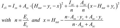 Il momento d’inerzia per flessione negativa è dato dal contributo del solo