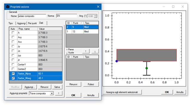 mentre in questo caso si devono aggiungere le caratteristiche di Trave composta da Aggiungi proprietà della scheda Dati.