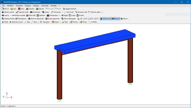 Dalla versione 1.4 è possibile modellare sezioni composte acciaio-calcestruzzo, che sono supportate in modo nativo dal programma, permettendo di modellare correttamente la loro rigidezza nel calcolo.