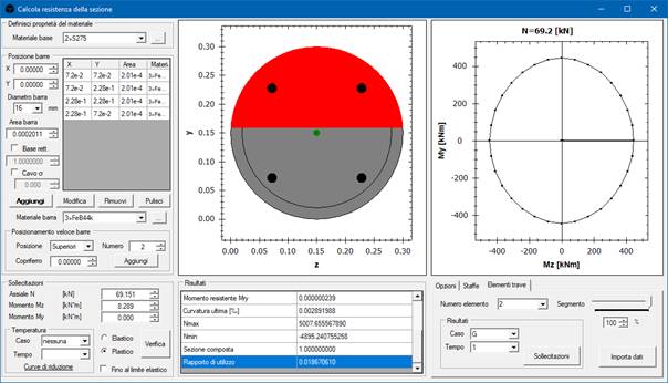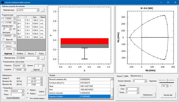 Come mostra l’immagine precedente, viene calcolato l’intero dominio My-Mz per l’azione N impostata.