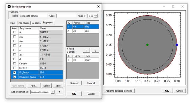 The remaining properties are calculated by dividing the contribution of concrete by the moduli ratio n. The specific properties of the element considered must be selected from the Add properties set drop-down menu, choosing Composite column and clicking the side button to input them in the data.