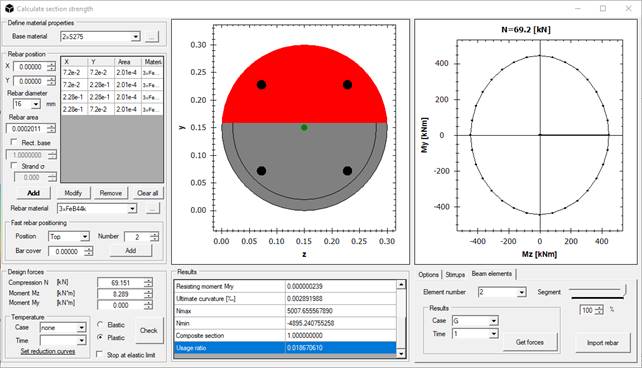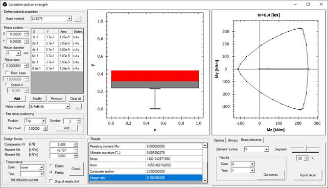 The results of the analysis take into account the mechanical characteristics of the different materials composing the resistant sections, while the stress diagrams for each element remain unique.