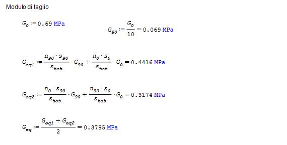 Allo stesso identico modo, il modulo di taglio G equivalente viene ricavato con le medesime relazioni: