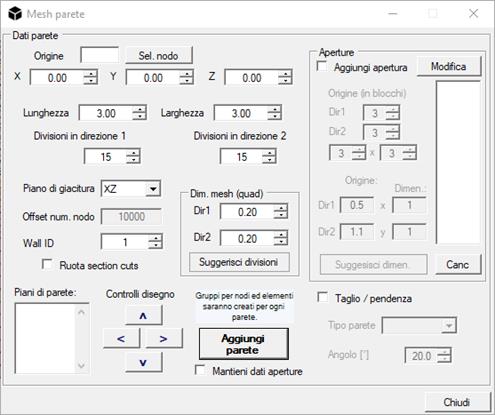 3. scegliere una dimensione opportuna della mesh nelle due direzioni Dir1 e Dir2. Questa operazione assume particolare importanza per il calcolo della rigidezza delle molle rappresentanti le viti;