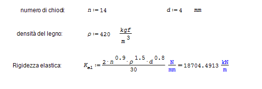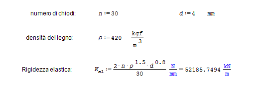 Allo stesso modo, la rigidezza assiale di un hold-down con 14 chiodi d=4mm può essere stimata utilizzando il numero efficace di chiodi (qui esemplificato come n elevato alla 0.9):