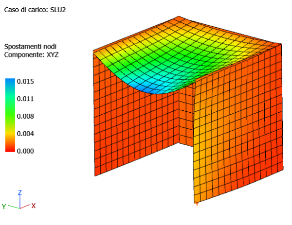 I risultati dell’analisi del modello utilizzato in precedenza sono consultabili in termini di spostamenti nodali e forze e momenti per unità di lunghezza per le shell.