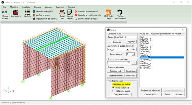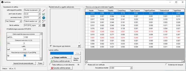 La verifica delle pareti in X-Lam è immediata con il modulo WoodCheck: selezionando la voce “Tutte le section cut” è possibile eseguire la verifica per le section cut che sono state definite automaticamente per ogni parete dal mesher.