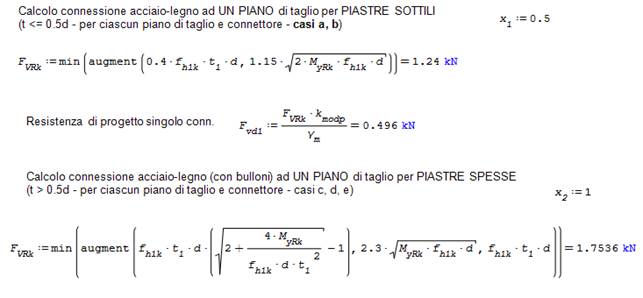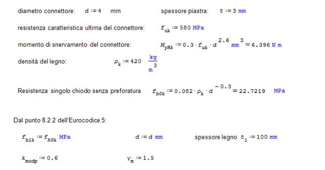Si riporta nel seguito un esempio di calcolo della resistenza lato unione legno-acciaio di una vite, secondo la formulazione dell’Eurocodice 5, che riprende quella originariamente proposta da Johansen.