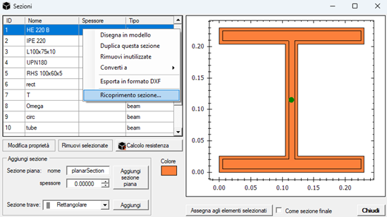 In seguito, dalla maschera Modifica / Sezioni, applicare il rivestimento con il comando tasto dx / Ricoprimento sezione, specificando lo spessore quando richiesto.