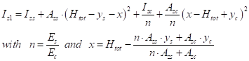 The stiffness of beam elements having such sections is evaluated as follows. With subscript s, steel properties are described, while the ones related to concrete have the subscript c.