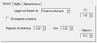 - Fattore n permette di modificare il fattore di omogeneizzazione (rapporto fra i moduli dell’acciaio e del calcestruzzo). Il valore di default è 15.