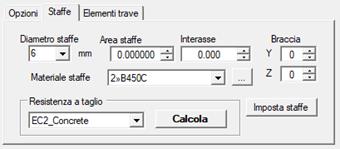 La maschera Staffe permette l’associazione delle caratteristiche di staffatura alla sezione, permettendo così il calcolo della resistenza a taglio.