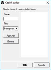 Casi di carico: Inserisce i casi di carico statici lineari scrivendo il nome nella casella Nome e cliccando su Aggiungi.