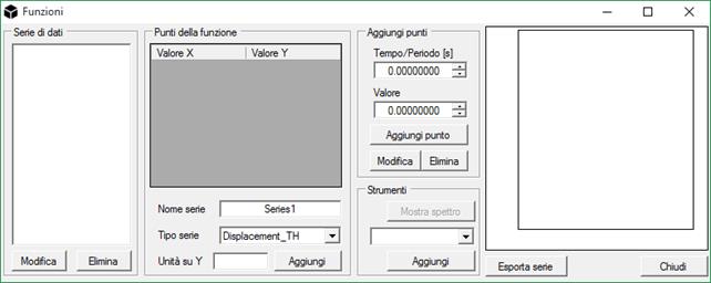 Funzioni: Aggiunge funzioni di carico time-history (TH) o spettri di progetto, per punti o da file.