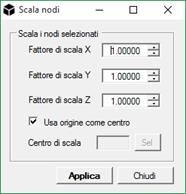 Scala nodi: Scala i nodi selezionati (e opzionalmente gli elementi) rispetto ad un punto nello spazio 3D.