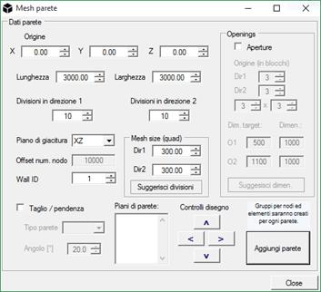 Mesh parete: Il comando permette di inserire e meshare pareti di dimensione e posizione arbitraria, composti da elementi piani Quad.