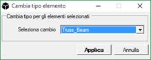 Cambia tipo elemento: Il comando permette di cambiare il tipo degli elementi selezionati. Selezionare dal menu a tendina una trasformazione e premere OK.