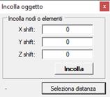 Incolla: Incolla gli elementi selezionati e mostra la maschera seguente in cui specificare l’eventuale shift nello spazio rispetto agli originali (CTRL+V).