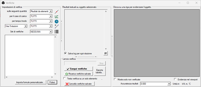 Verifiche: Permette di eseguire controlli personalizzati su nodi o elementi. Si rimanda al paragrafo dedicato per maggiori informazioni. Per eseguire una verifica su nodi o elementi: