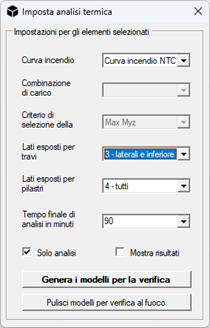 - Tempo finale di analisi in minuti: selezionare il tempo di analisi per il quale verrà condotta la verifica resistente della sezione.