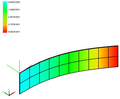 The third tutorial consists in a cantilever beam loaded with points load in direction y with modelled by shell elements (Mindlin-Reissner theory). The output results of NextFEM Designer (Frame forces and displacement) are compared with hand calculations.